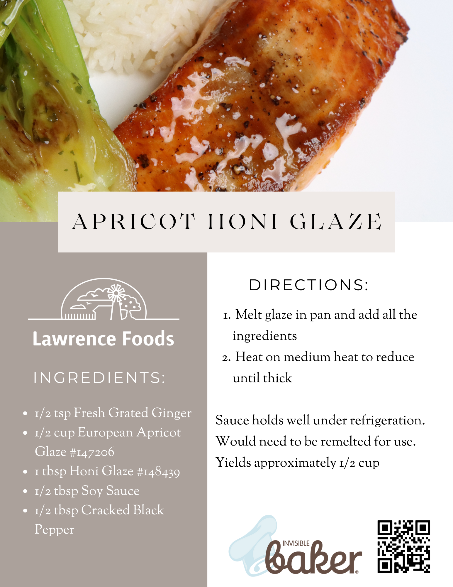 Sweet and juicy apricots have the gentle unimposing flavor to work flawlessly with light and tender fish. This glaze with Lawrence Foods Apricot EZ Squeeze® Filling and Honi Glaze provides sticky pleasant mouthfeel to pair with the juicy fish.