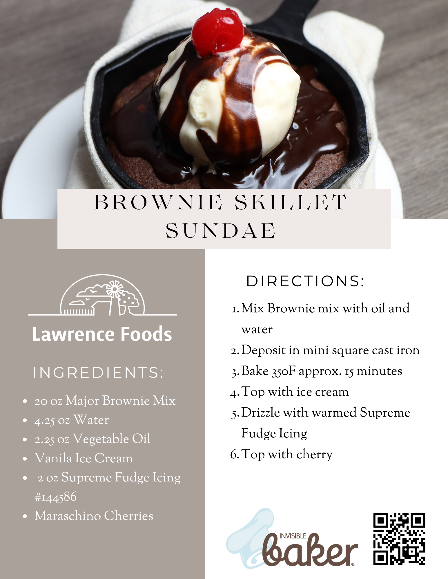 A warm brownie with ice cream is an after dinner delight, pair it with warm fudge and it becomes perfection. Lawrence Foods Major Brownie Mix is an easy to use just add water mix that makes a moist and tender brownie that is begging for fudge. Supreme Fudge Icing is a versatile product that can be used warm or room temperature to give the best fudge flavor and texture.