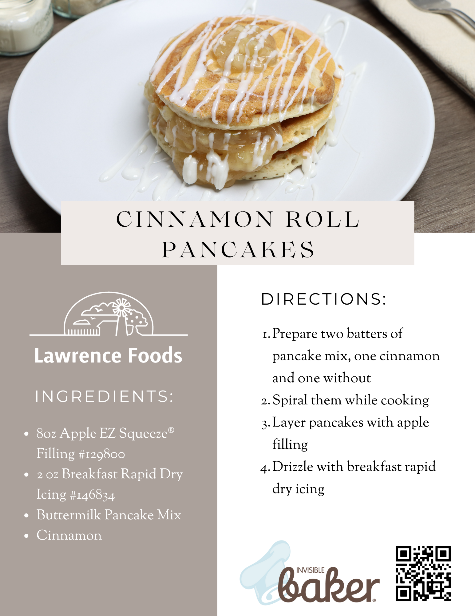 Cinnamon and apples swirl together in this delightful stack of breakfast goodness. Lawrence Foods Apple Filling offers the freshness of the orchard on your breakfast plate with this homey classic of warm spices. Crisp apples are perfect for any season to kick up perfect pancakes.